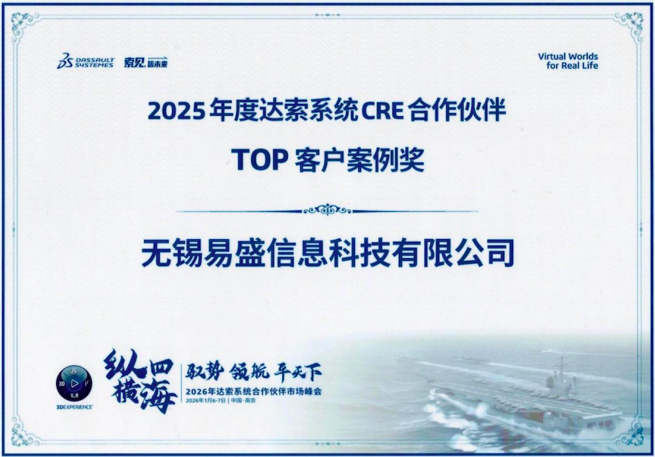 在2025年度的技术攻坚与创新实践中,易盛团队凭借前瞻的行业洞察、扎实的技术积累和高效的协同能力,荣获达索系统 “