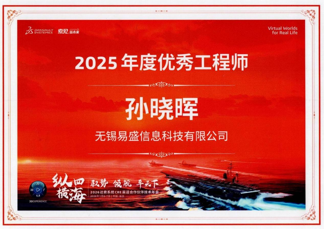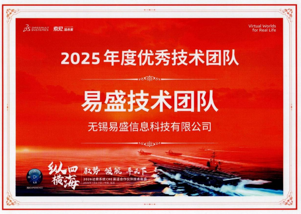在2025年度的技术攻坚与创新实践中,易盛团队凭借前瞻的行业洞察、扎实的技术积累和高效的协同能力,荣获达索系统 “